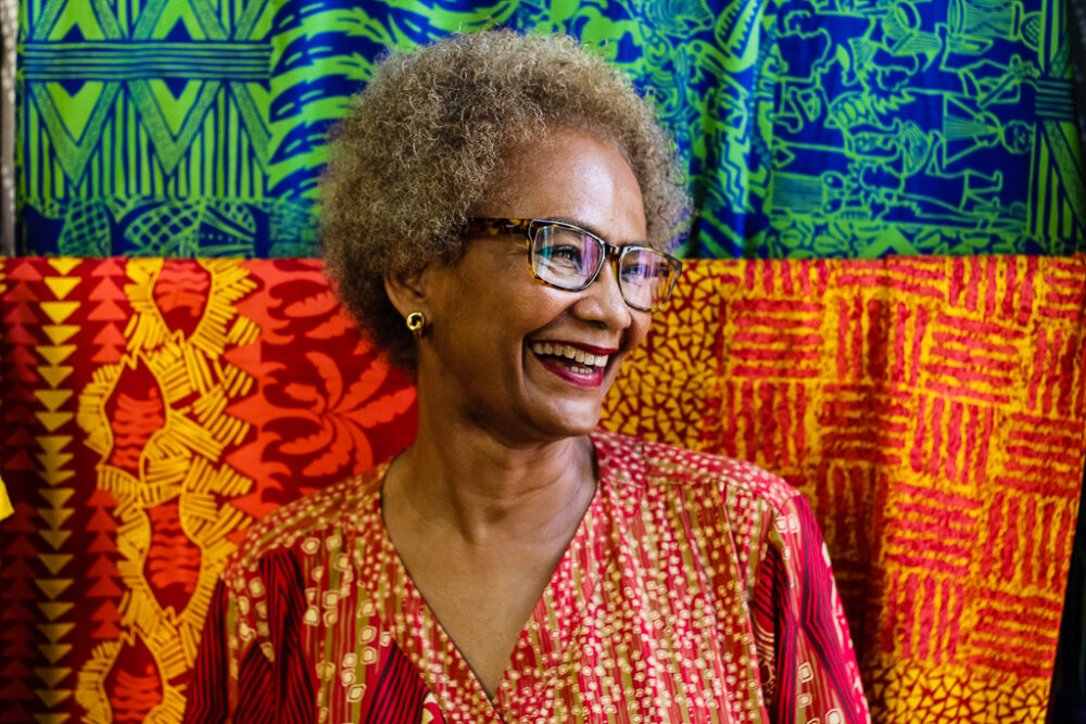 Designer e artista plástica. Uma das pioneiras a valorizar e traduzir a cultura afro-baiana em estampas e objetos. No Carnaval, sua obra inspira ao vestir identidade e história, levando símbolos ancestrais para a rua e para o cotidiano.